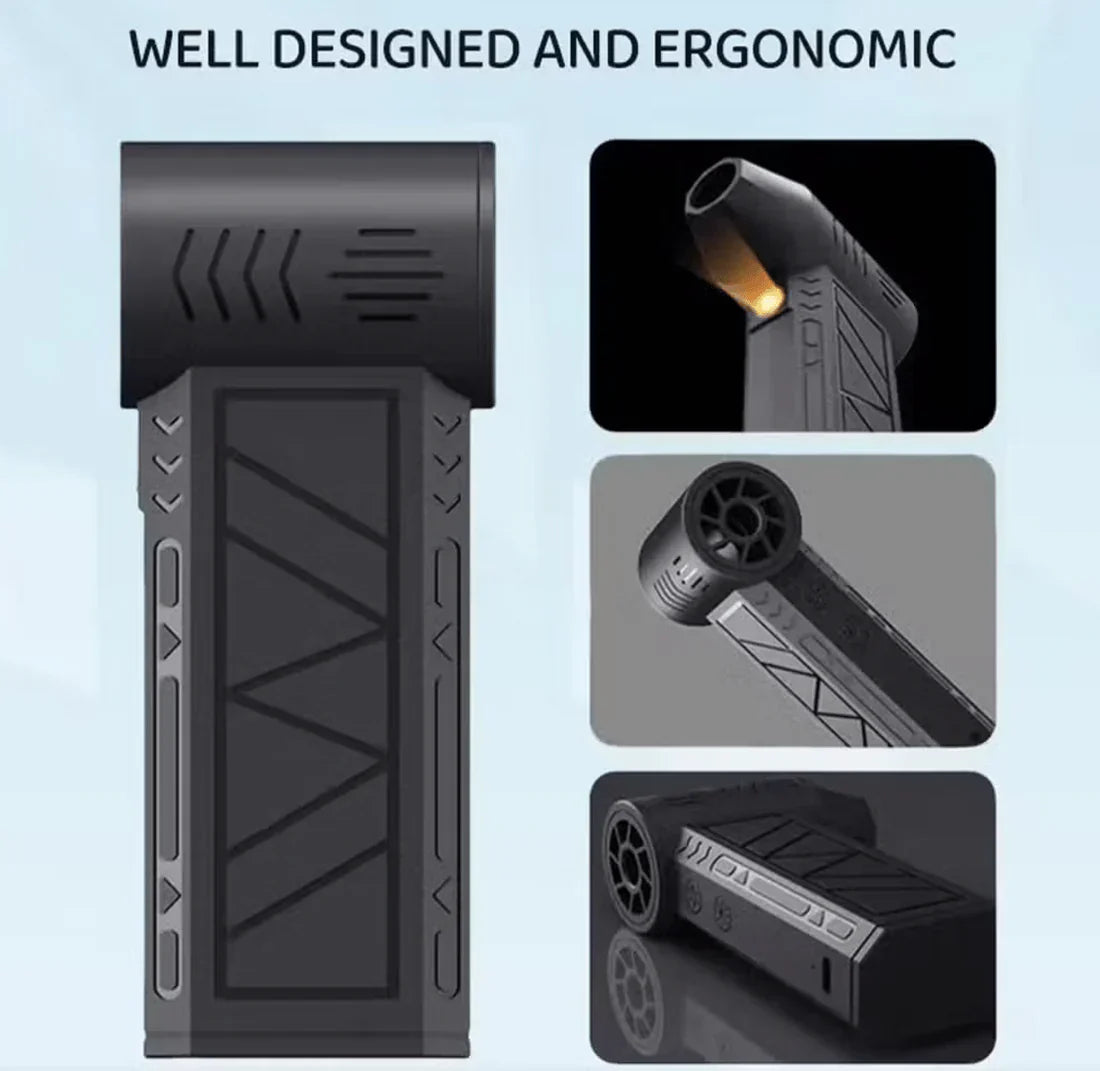 🔧 تطبيقات متعددة: مثالي لتنظيف مكونات الكمبيوتر، إزالة الغبار من الأماكن الصعبة الوصول إليها، أو توفير نسمة هواء منعشة في الأيام الحارة.